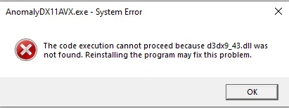 To resolve the D3DX9_43.dll error code, you will need to install/update your DirectX End-User Runtime.